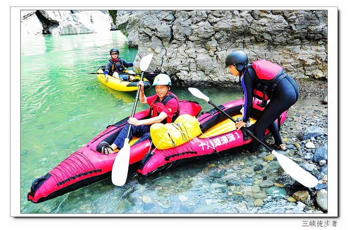 与徒步、攀岩、蹦极等探险活动相比,漂流简单得多(当然只是“业余”的漂流如此)。驾着无动力的小舟,利用船桨掌握好方向,在时而湍急时而平缓的水流中顺流而下,在与大自然抗争中演绎精彩的瞬间,这就是漂流,一项勇敢者的运动。