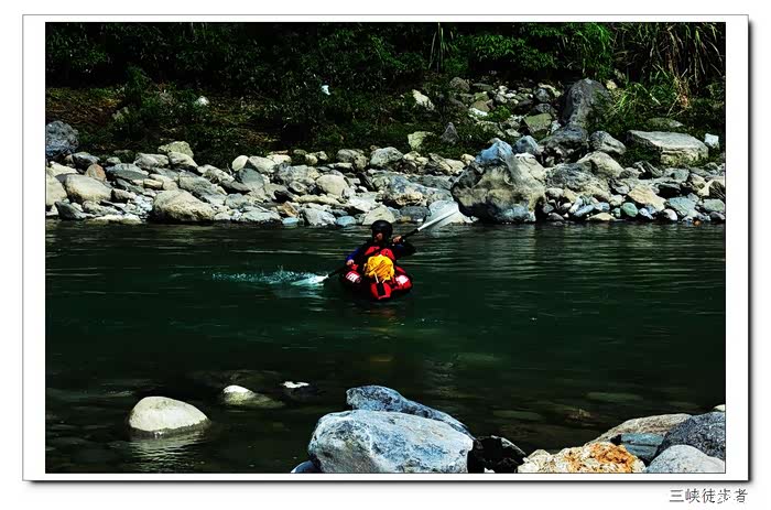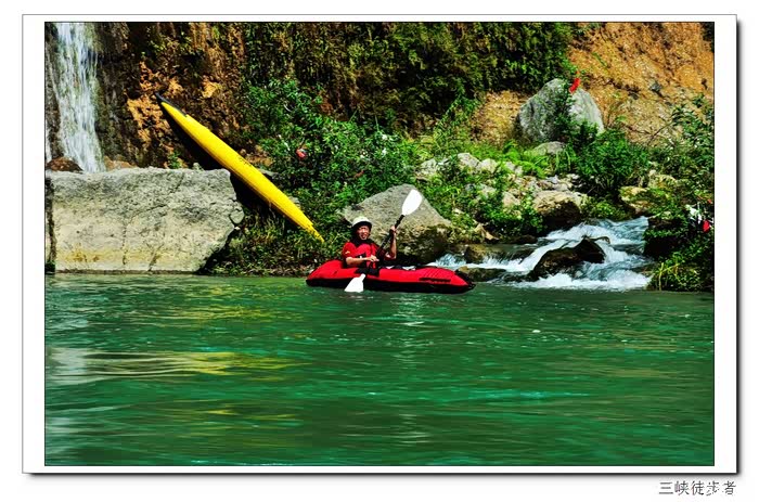 我们的皮艇在溪流中,非常漂亮协调的成为一道风景线。有时候,我真的有些感慨,其实我们在自己的生活中扮演着自己的角色,在不自觉中融入其中,自己的身体和精神也在自己的世界中被风化,被水化,也成为生活中的风景。人,融入风景,便成为风景,风景中有了人,也便有了生命。