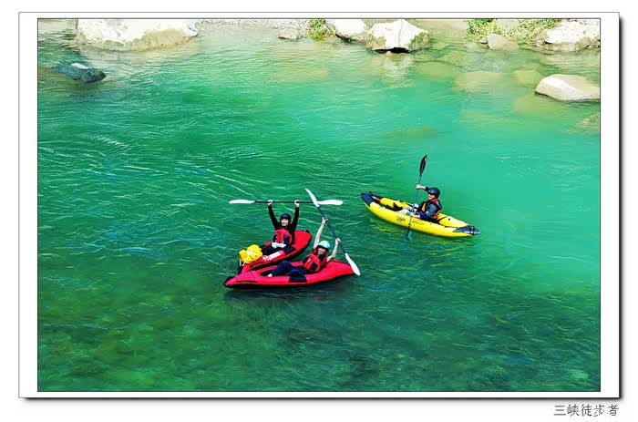 我们的漂艇是高分子材料制作,有三个独立气仓,在正常使用下不会有漏气问题,由于溪水并不深,即使出现问题,也能及时上岸的。