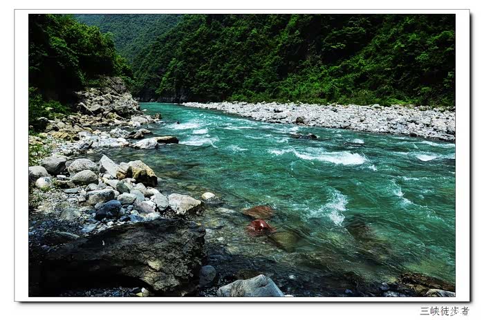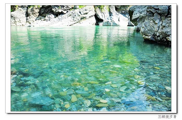 水缓处形成幽静平湖,浓绿莫测,浅滩处水深不及膝深。