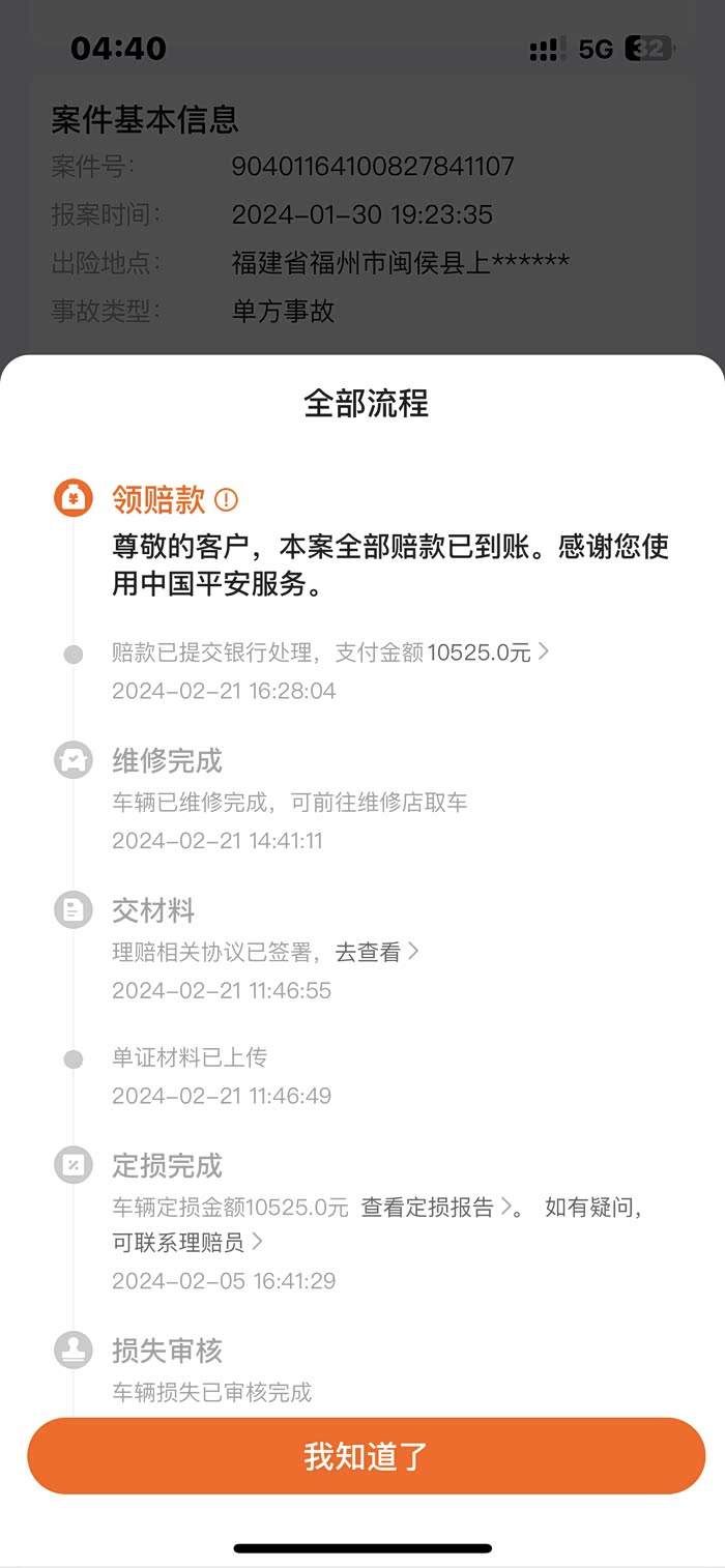 想不到我的胖虎这“一血”事故,保险赔付了10525元!从1月30日事故发出,到2月21日完成事故理赔,前前后后也花了近3周的时间!