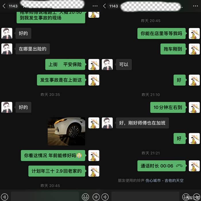 图一:联系上小鹏福州仓山售后服务中心工作人员