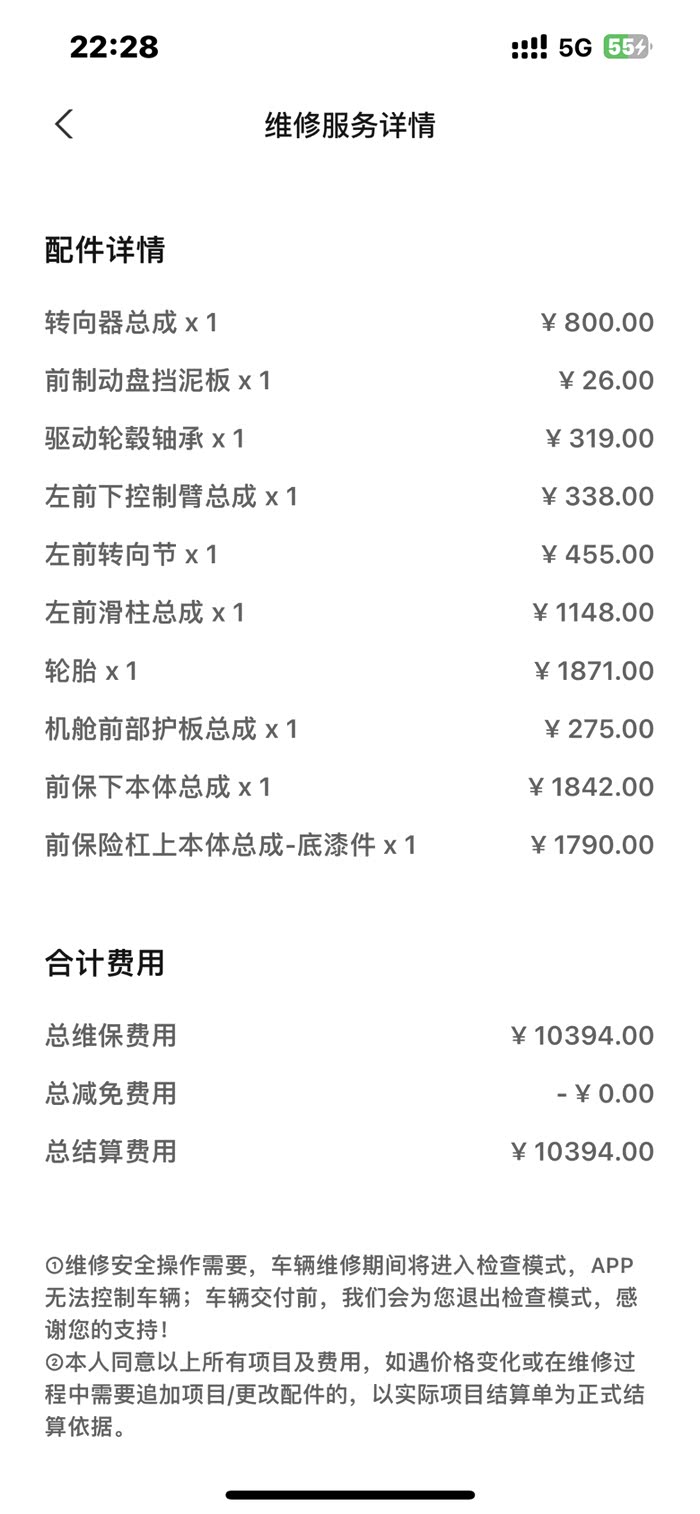相比我之前开了近六年多的燃油车,我的胖虎这次事故维修费用清单都能通过小鹏汽车App中查询到!同样在平安好车主App上也能查找到具体理赔金额!一开始还担心单方事故,保险公司不予理赔,但结果却是我想多了!理赔的过程还是相当顺利的,平安保险公司会把维修钱款直接付给小鹏汽车仓山售后服务中心,而我只需要在App上电子签名确认就完成理赔!