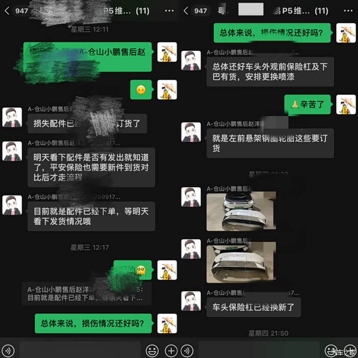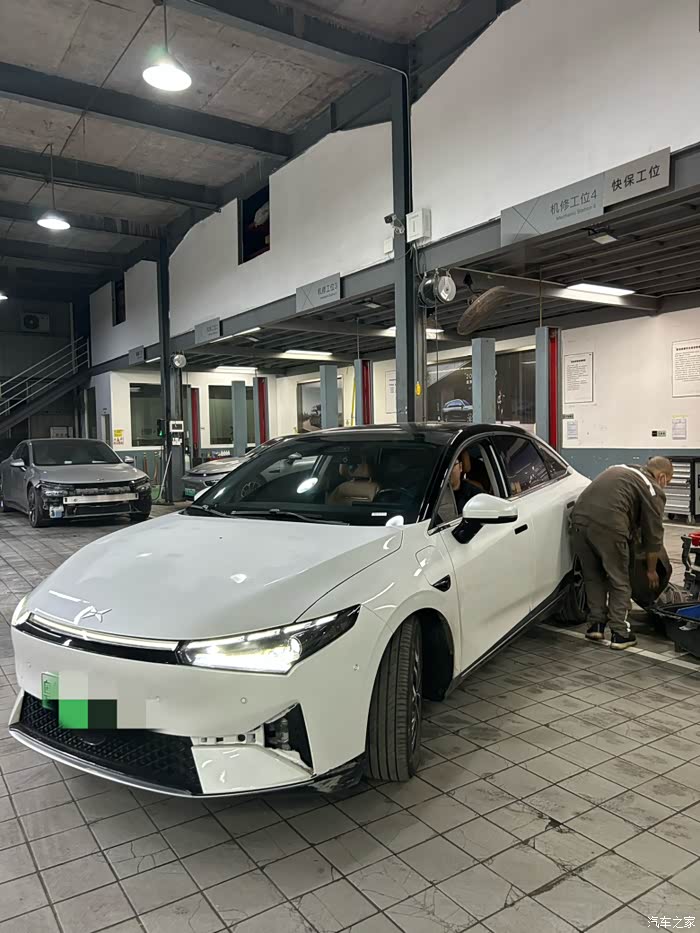 果然,小鹏的工作人员十分负责任,而且还有位维修师傅还没下班,就安排顺道一同查看了我的胖虎损伤情况。