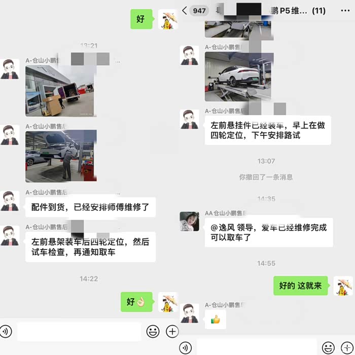 悬着的心终于放下了,见证了小鹏速度。有了专属维修群工作人员通知的信息,真的是喜大奔普,我的胖虎维修好了,再次感谢仓山区小鹏汽车售后服务中心工作人员以及维修师傅的付出!