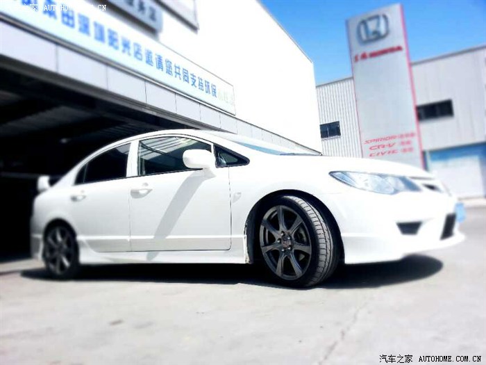 钢圈。。购车前在论坛潜水 看到几位车友换了FD2的铃 非常的好看 于是还没提车时就一直联系哪里有的卖 呵呵 不久就收到了个人很喜欢的枪灰色