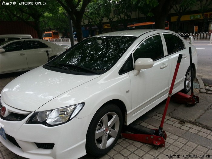 9代思域 原厂越野模式 趴下后 车身更加协调了 哈哈 那么憨厚的前脸 在更换了避震后再加上前唇胶条,瞬间杀气就出来了 哈哈!赞!