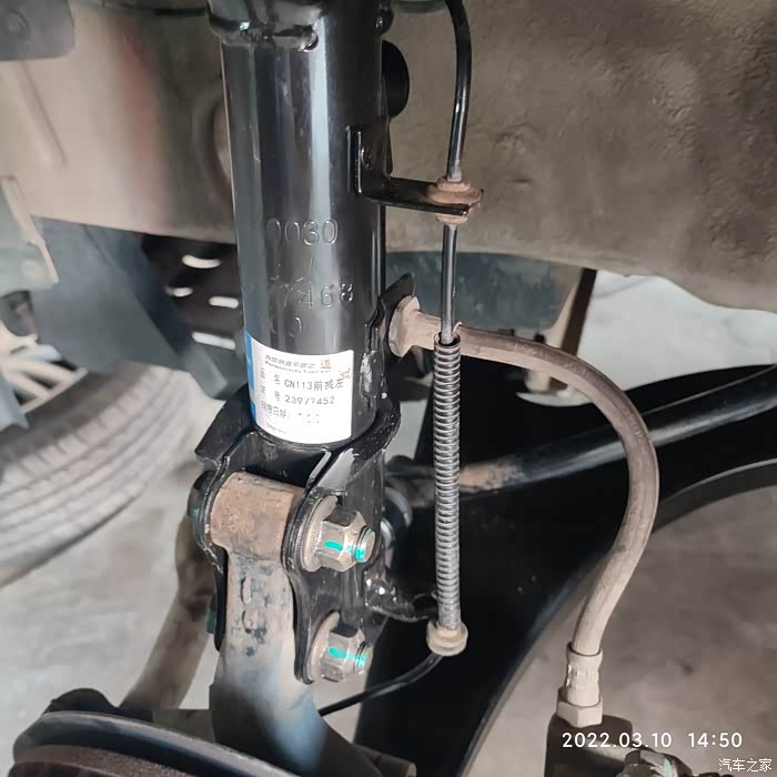 这是新的下摆臂已经安装好的样子,这下摆臂好便宜1根才80多块钱,换这配件一点都不心痛。