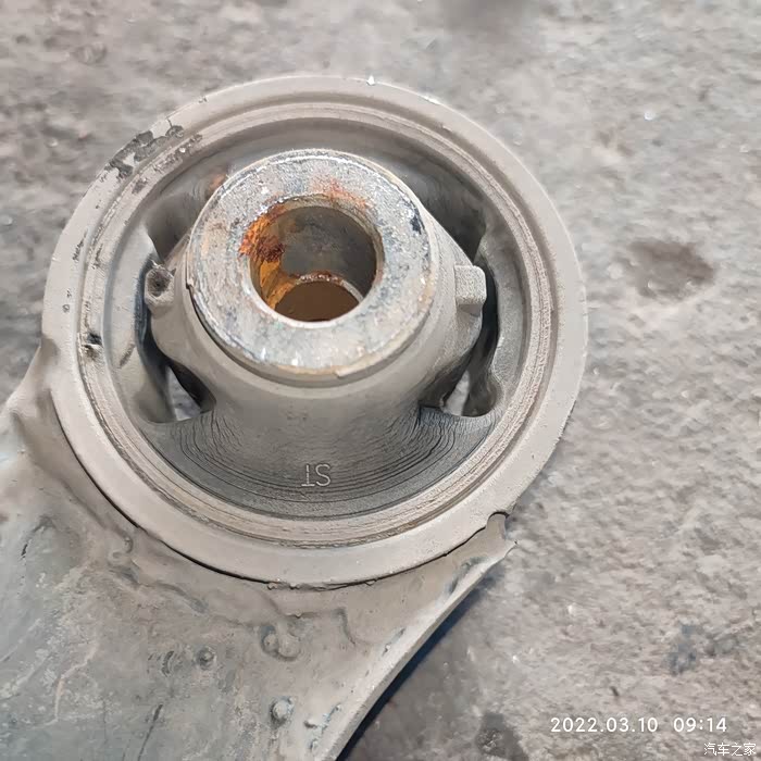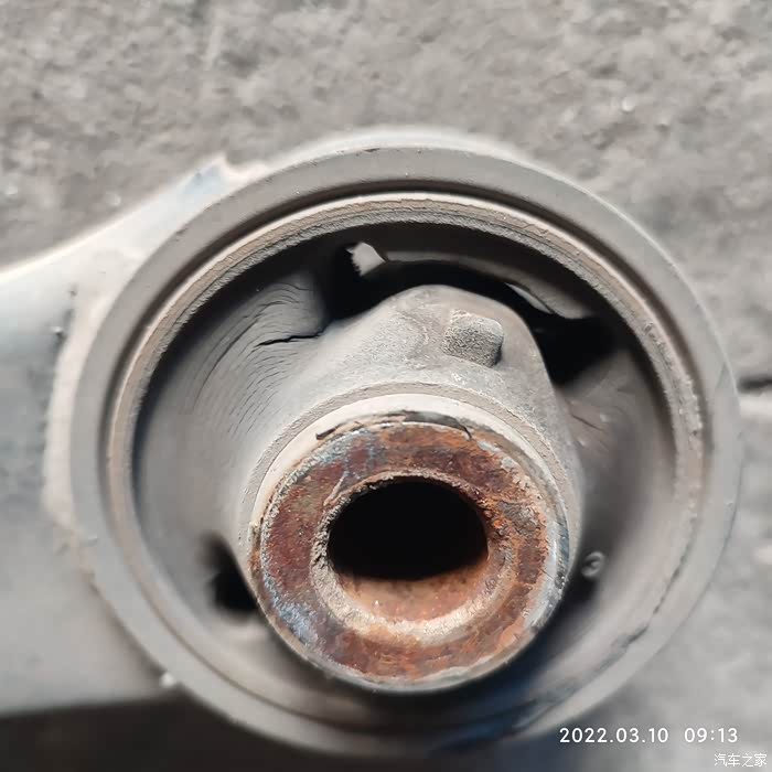 原车下摆臂总成(右)上的大胶套,轻度老化没有完全脱开。