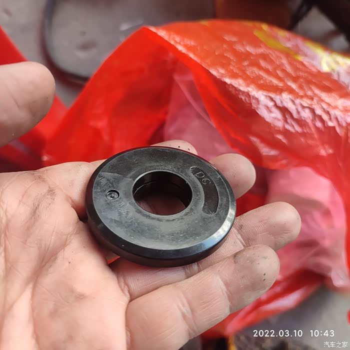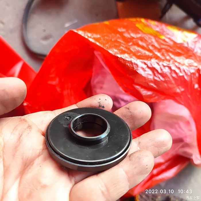 这是前减震器上面新的平面轴承,和原车拆下来的细节不一样不是同一个厂家生产的。