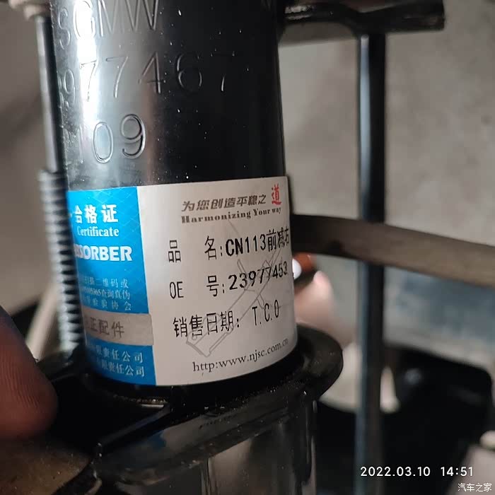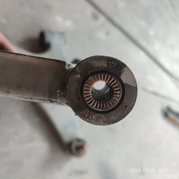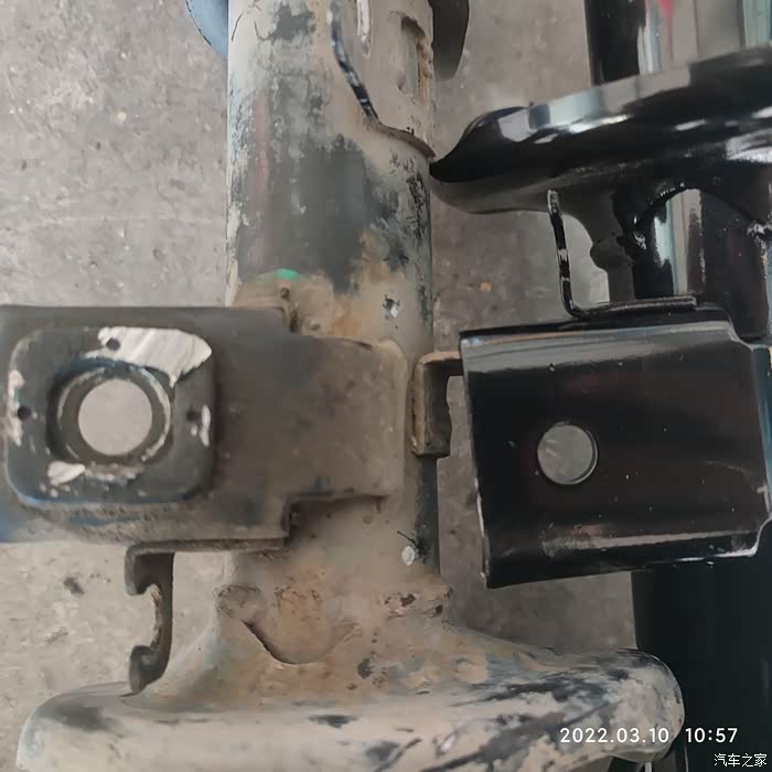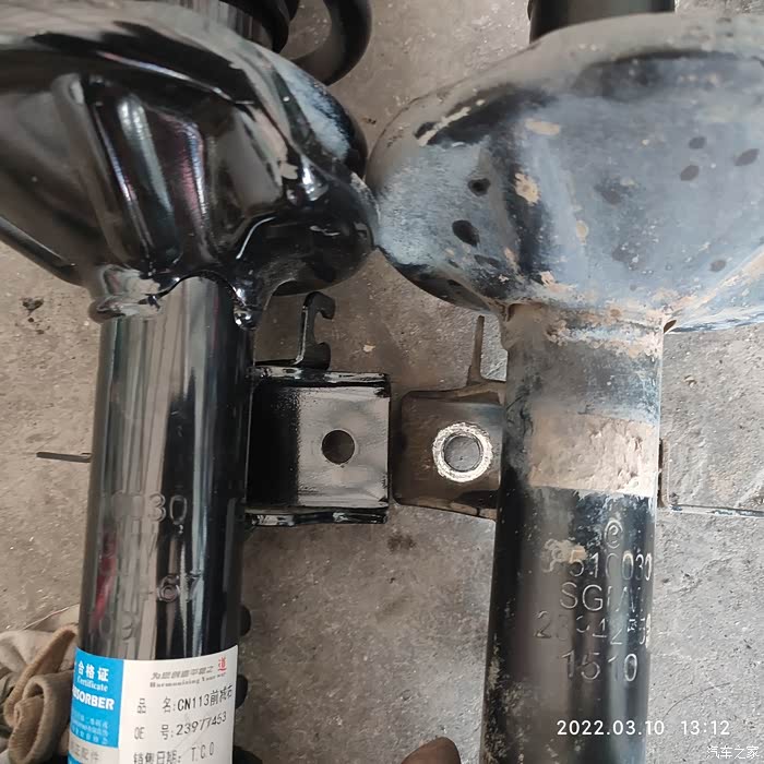 2、上面说到宁江山川前减震器装平衡杆螺丝的孔小的问题,还好我有机械厂的客户在修理厂附近,我把2根减震器带去扩孔后就能正常安装了。