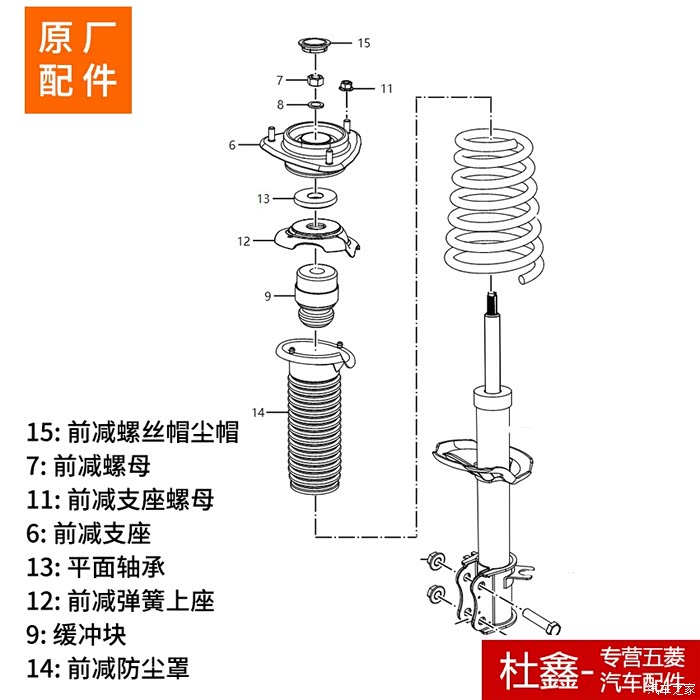 这是前减震器总成安装分解图供各位车友留底以免装错,我是从淘宝商家转载的,总之淘宝上卖的不管任何商家都要注意,我们以带原厂防伪标的包装为准!