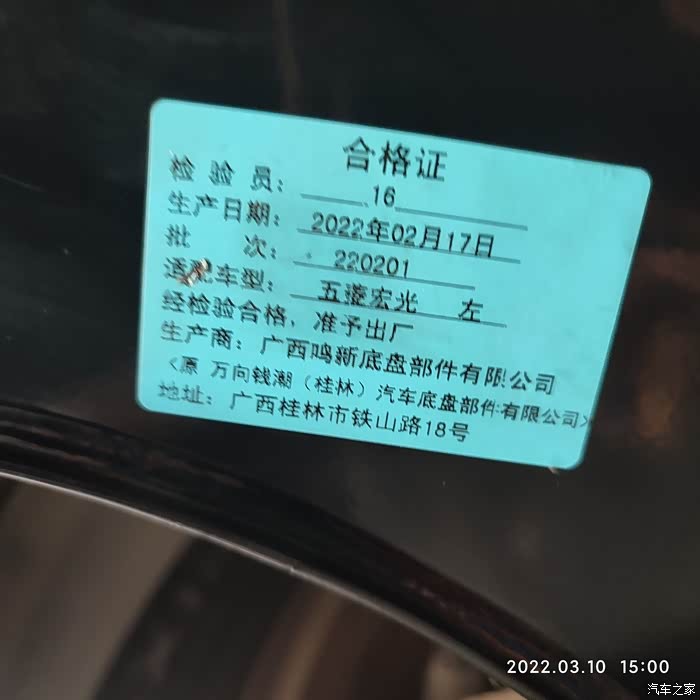 建议各位车友不管是实体店还是淘宝上买五菱汽车配件只认带防伪的原厂五菱标的配件才靠谱!!!别听商家所谓配套厂的说词都是蒙我们车主的。