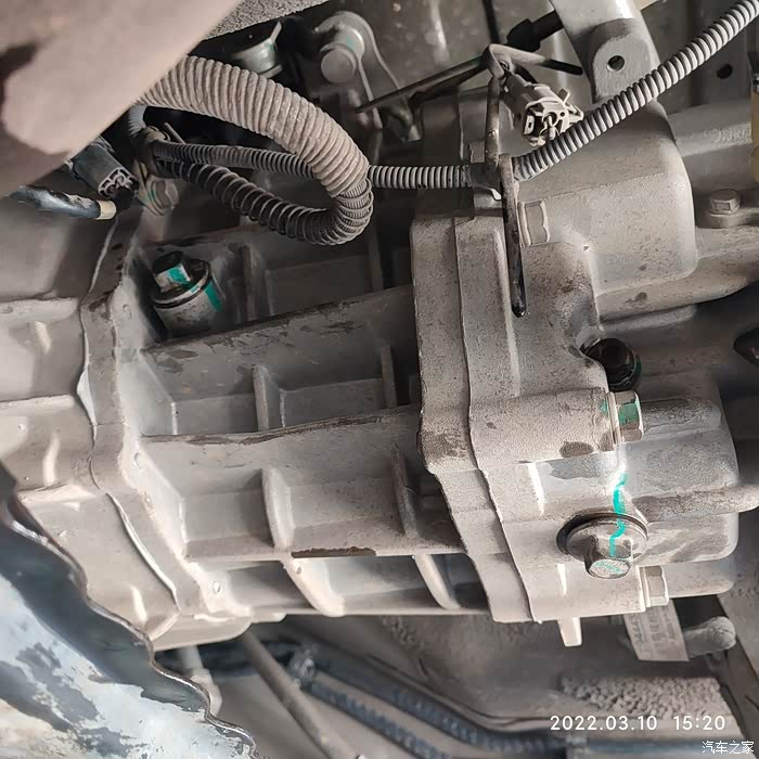 这是带单根传动轴的手动变速箱右下角是放油螺丝左上角是加油螺丝,螺丝旋紧后我都会用绿色油漆笔划记号。