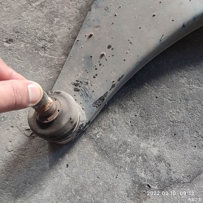 原车下摆臂总成左右2个的球头都很松散,用手很轻松自如的摇动,新的下摆臂球头很紧致手很难摇动!!!