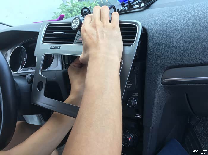 上海过户提档就有点坑,要等五个工作日,停车场停一天要52块。心疼啊,没临牌不敢开回去,附近转了一会找了个小区停的。提车第一件事就是把黑白屏换了。等车期间一直在咨询各种改装,877啊,866啊,原厂翻盖,旗舰大灯啊,刚全款买了车,手头也不宽裕了,还是买实用的,慢慢来吧。