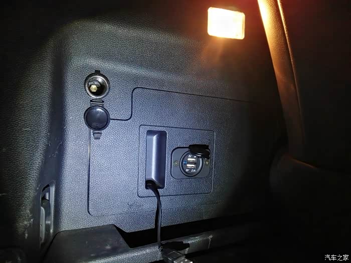 2个充电孔,一个5V的手机充电,一个车载充电。