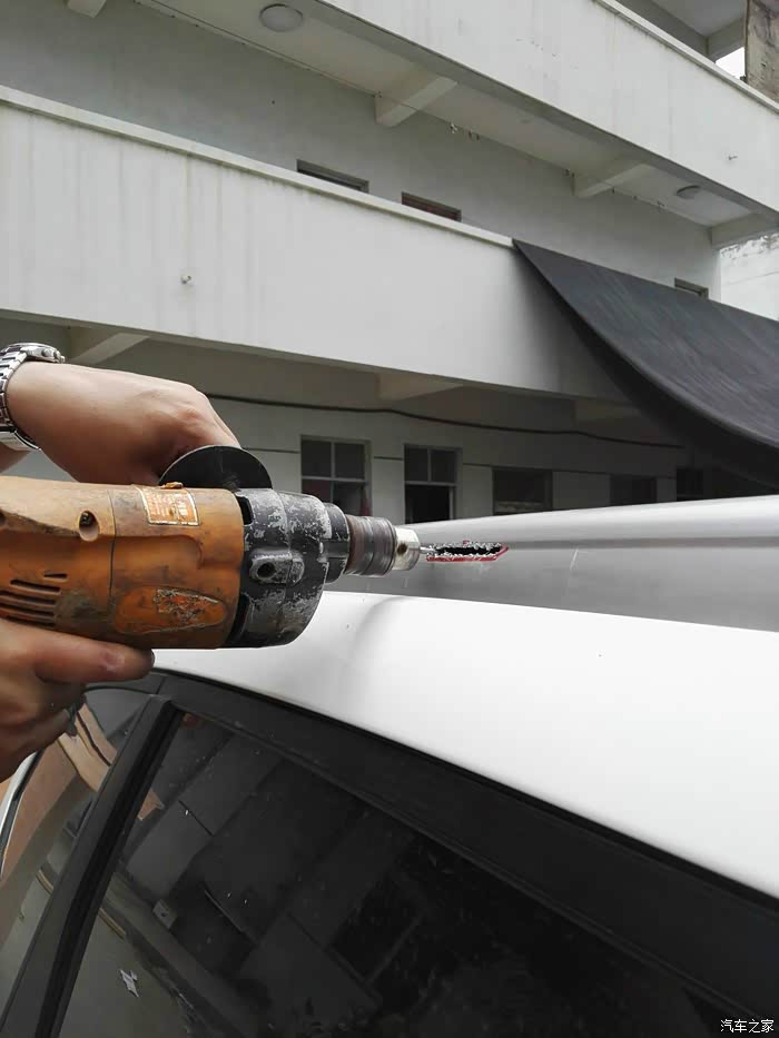 改装注意事项:先把行李架与行李箱装好,上车顶棚。有天窗的开启天窗,比划下在哪个位置不影响天窗开启,然后用记号笔在需要开槽的位置作记号。然后开槽,拆卸行李架的安装脚试安装。