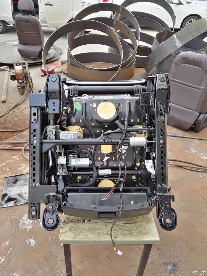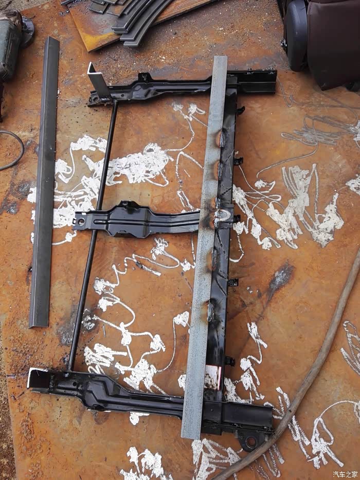 改装注意事项:座椅的宽度要与原车差不多,座椅的导轨宽度最大只能在55,尽可能选择45左右的宽度,这样改装起来比较方便。改座椅最难的是改4个脚,需先拆原车的4个脚,在车中对好位置,然后将待改座椅放入其中,点焊,然后拿出来焊死。注意焊接要离车远点,不然焊点会迸溅到车上,会留下点点痕迹,如有此问题,建议买3M的至尊细蜡(130元)擦拭清除。电动座椅的取电建议从副驾驶位侧板的保险丝盒中取电,并配15A的保险丝,负极可直接接到座椅下面的螺丝处。