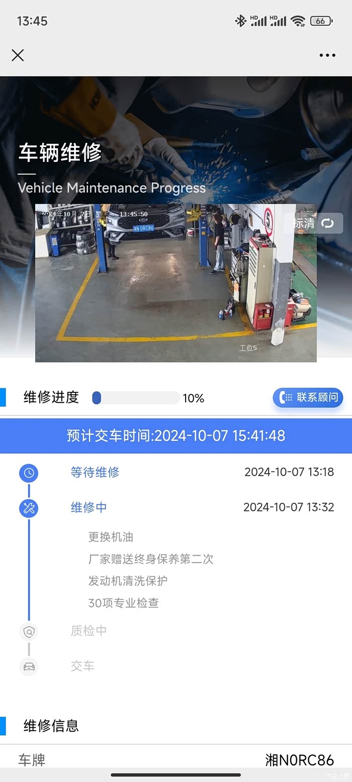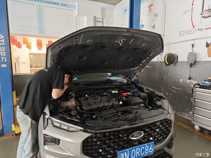 四:现在开始你就是盯进度了,一般来说4S店是不会偷懒的,先是底盘的检查,检查悬挂,减震,胎压,这里还要开始排放废机油了。