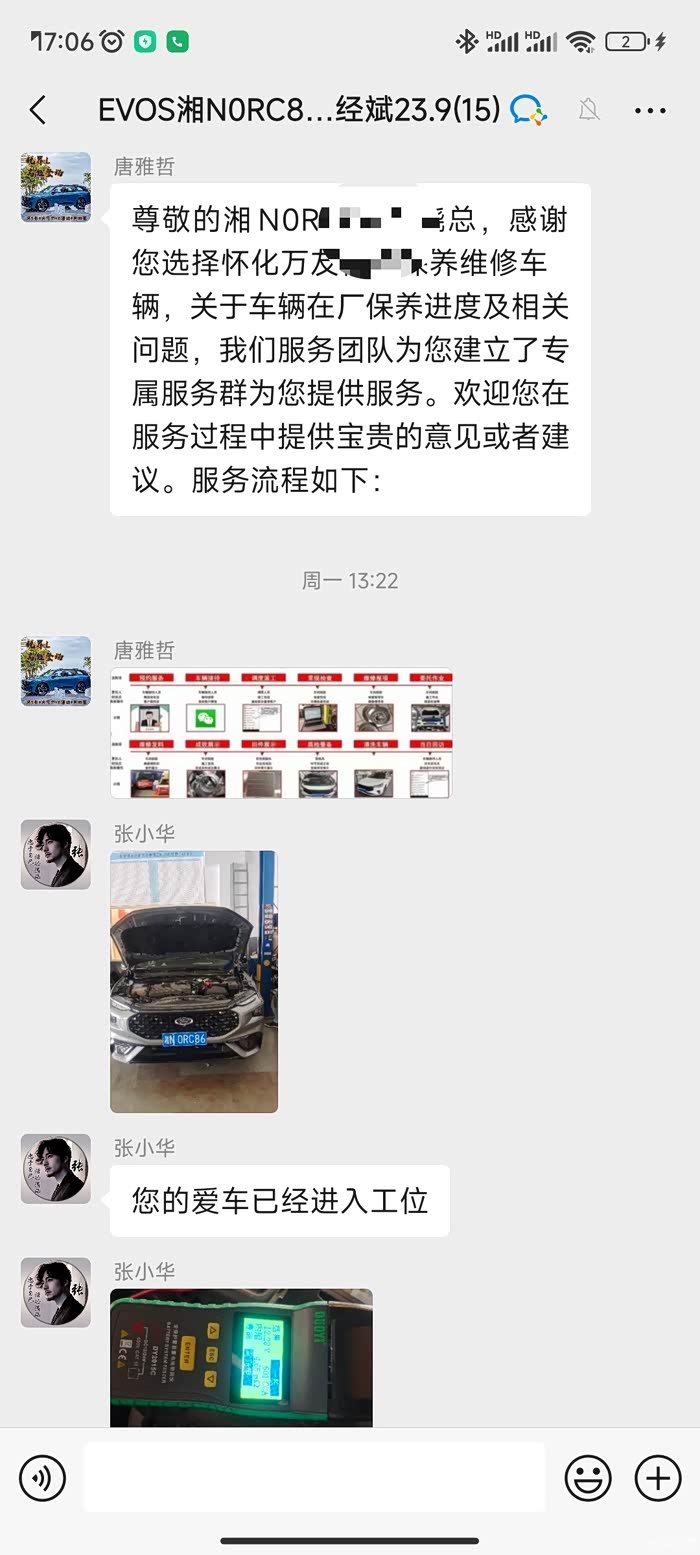 三:选择好后,会建立一个群聊,会把相关的流程发在群里,保养的步奏,和进度都会拍照发在群里。这里额外提一句,通过公众号,可以用监控直接看进度,非常清楚,请看下图。