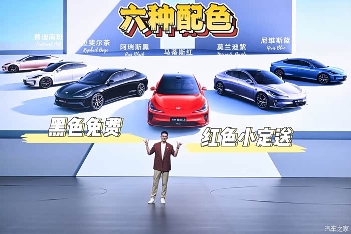 车漆颜色有六个颜色,黑色免费,小定送红色车漆,不过要是不喜欢红色,选其他颜色却不免费,个人觉得对于小定用户送的红色要是可以免费换成紫色等其他加价车漆要合适一点。