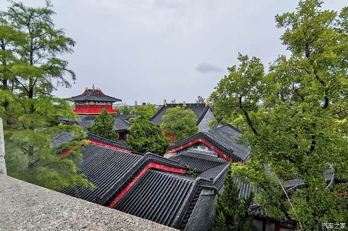 看看这建筑,红墙黑瓦,搭配绿树,交相辉映。