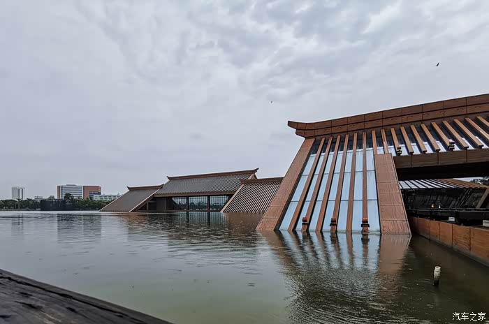 这是广富林最具特色的建筑了,文化遗址的展示馆,水下建筑,上面只有个屋顶,很多人第一次来还以为是被水淹了。