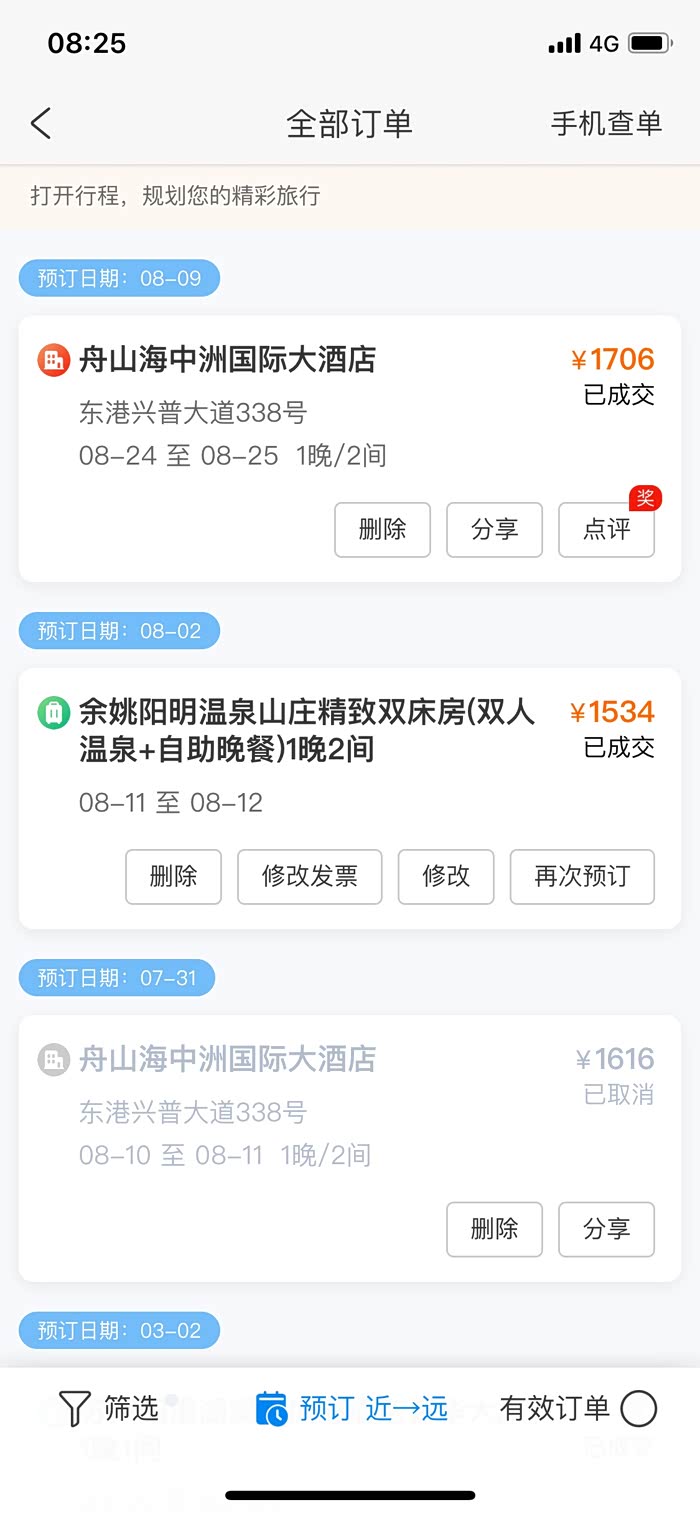 所谓念念不忘,必无回想,万恶的利奇马以17级的优势强势插我们的队,正好在我们的预旅行日期台州登录,江浙沪包游,直接把我们的度假游泡汤了,幸亏海中洲可以在出行前一天的12点前无条件取消(是先消费后扣款模式),我立马取消了10号晚的客房,但温泉山庄的是先买单后消费的,不支持无条件退房,退房要扣将近90%的违约金,一番沟通下来只能延迟消费,但是客房太火爆,最后协调到8/25入住,和朋友一家沟通后将行程改到了8/24~8/26,然后火速订下了海中洲8/24晚的客房,虽然没有涨价但已经没有任何优惠了,后来我到8/22再查的时候发现同款房间已经涨到了1300多,看来早订也是有好处的;