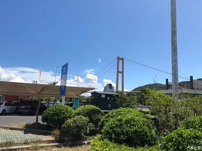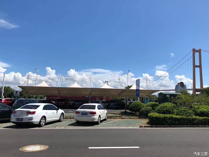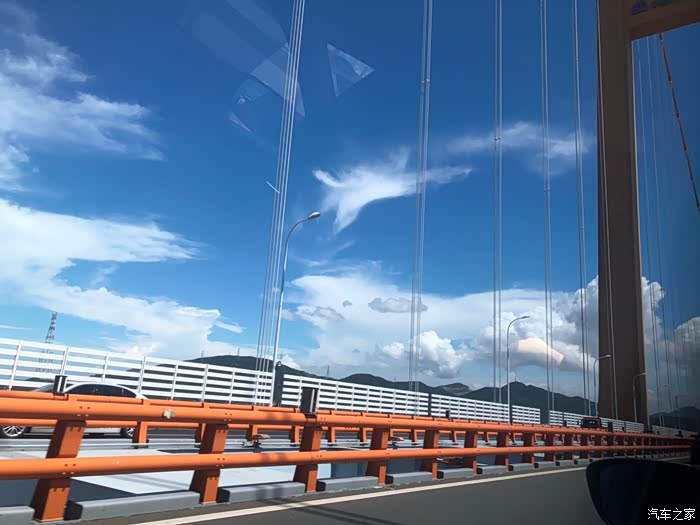 8/24,可能受到白鹿外围影响,出发时还是阴爽的天气,到沈海高速便开始暴雨如注,这雨下的真好比世界末日,好在没有雷电和大风,比较神奇的是一出上海界到了浙江就天高气爽、艳阳高照,照例在北岸修整后上杭州湾大桥,过了大桥开始浙北景观大道,山是越来越多,天是越来越蓝,再加上棉花糖似的白云,简直就太值那点过路费了,可惜的是这样的路不能一路顺畅,越靠近舟山就越堵,中间大大小小堵了数十次,好在每次都是小堵,小堵怡情,心情也差不到哪去,尤其是这次出来竟然奇迹般的没有在宁波北高架迷之走位的道路里迷路,要知道我已经连续两年在这里被坑到一个叫大隐的地方绕圈了,今年出来时就在嘀咕菩萨保佑我不要再走错道口,可真的不想大隐隐于市了,也许菩萨真显灵了,今年竟然顺畅的过了那个口,直奔舟山而去,到了不是金门胜似金门的西候门大桥就是整段高速的最后一个服务区了,叫做金塘服务区,到这个服务区是要出高速的,虽然麻烦点,但是好在可以仰望整个西候门大桥,也算是一个小景点。