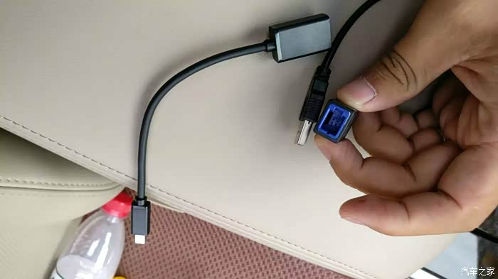 开始连接 先用USB公头数据线 连接车上原本的插头