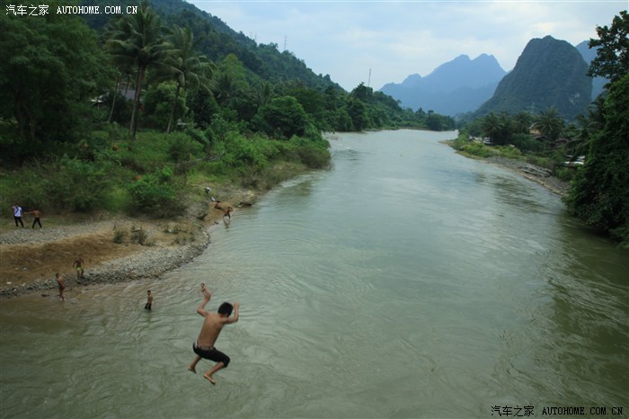 路过一不知名的地方,遇到一群老挝小孩在玩高桥跳水,感叹生活在河边的孩子们,不管男孩女孩水性都相当的好,看上去无忧无虑的。