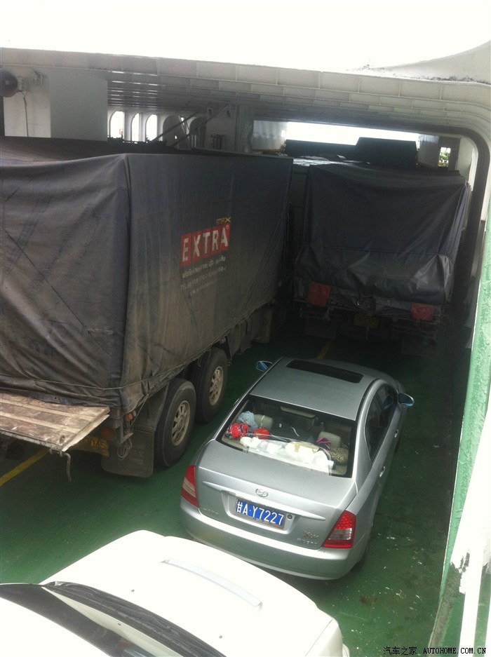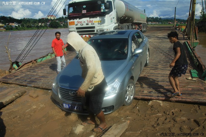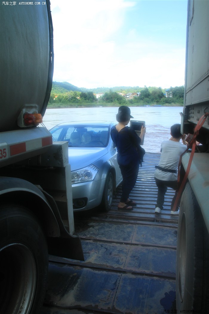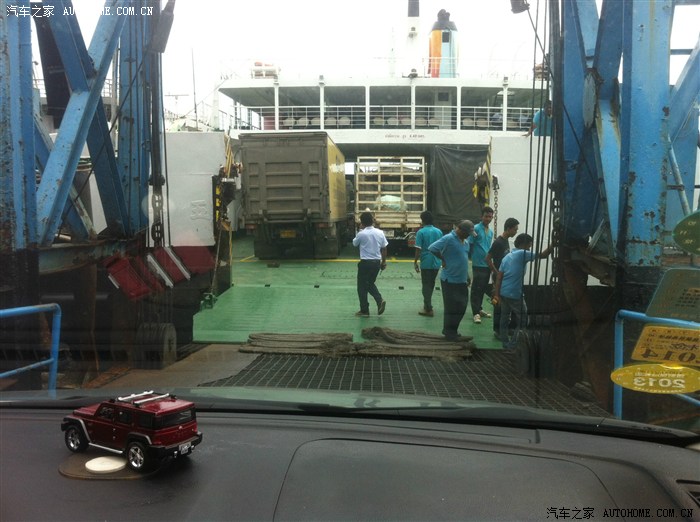 口岸码头的路常年被各类重型卡车碾压,我这底盘低的车就悲催了,陷住不敢动,船上的几个伙计帮忙搬石头,垫木板,最终把车顺利开到岸上。