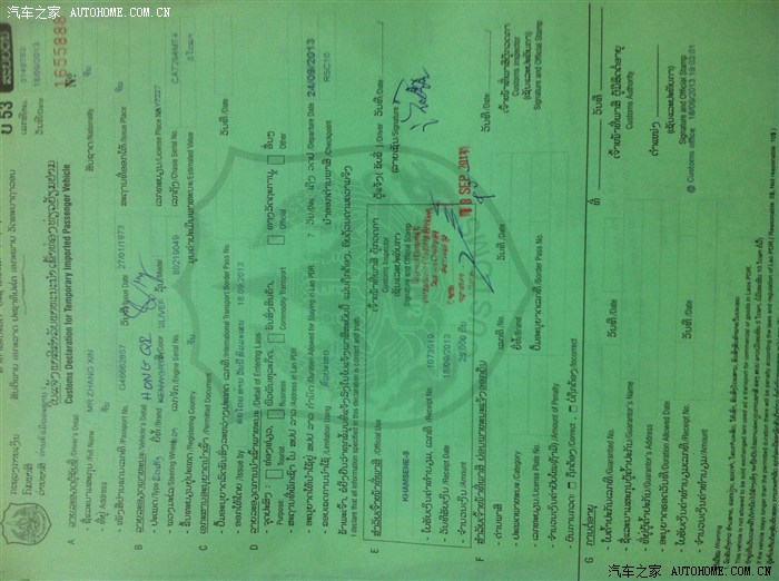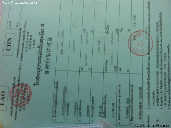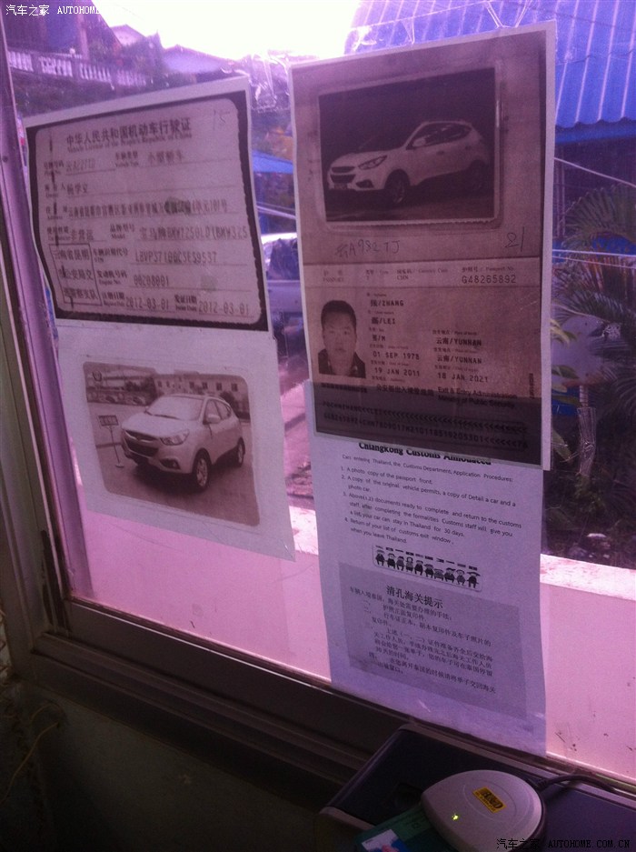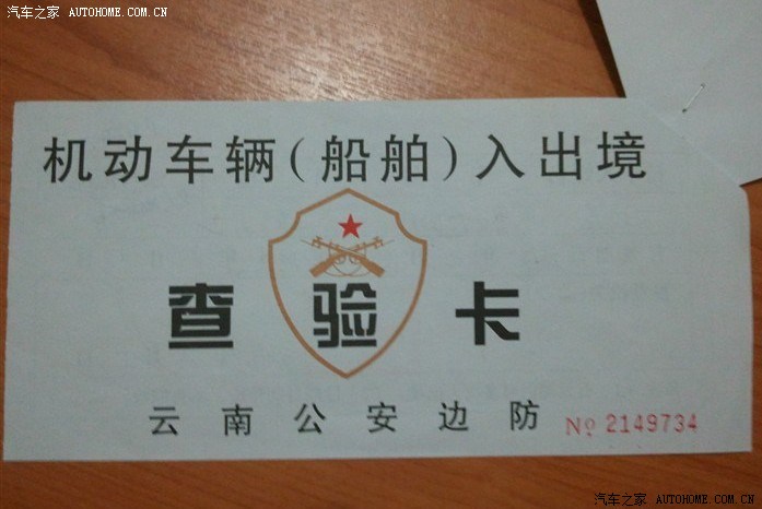 3、办理车辆出境手续时,海关给了一张临时出境中国籍车辆查验卡一定要收好,回国的时候要回收,背面会有中国和老挝的盖章,我当时放在扶手箱里忘了拍照留存,回国时左右就是找不到,后来还是武警小弟在搜查车辆的时候找到的。汗死我了。。。