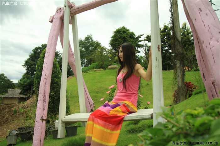 洋MM坐在秋千上, 快门咔咔响,秋千幽幽荡。