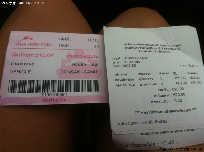 这里车辆渡船费1000泰铢,人的船票300泰铢/人, 汇率1:5.10