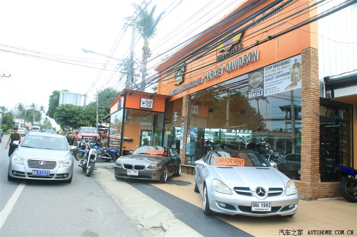 路过一家哈雷戴维森店,对外出租,价格最便宜的3000B一天,想来也不会太便宜啊。