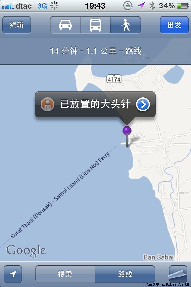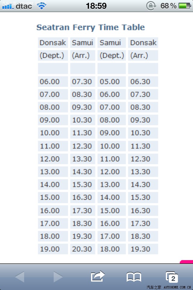 Tips: 从渡船上岸以后车辆就要靠左行驶了,所有的行驶习惯与中国完全相反,超车时要从右边超,需要副驾配合观察,在泰国行车一定是转弯让直行,根据直行车辆速度不同,100--300米之内如果有直行的车辆,转弯车辆必须等待通过后方可上路。 通常情况下,不得打喇叭,左转是小弯,右转是大弯,过盘旋路与中国也是完全相反的,初期不习惯,半小时后应该问题不大了。