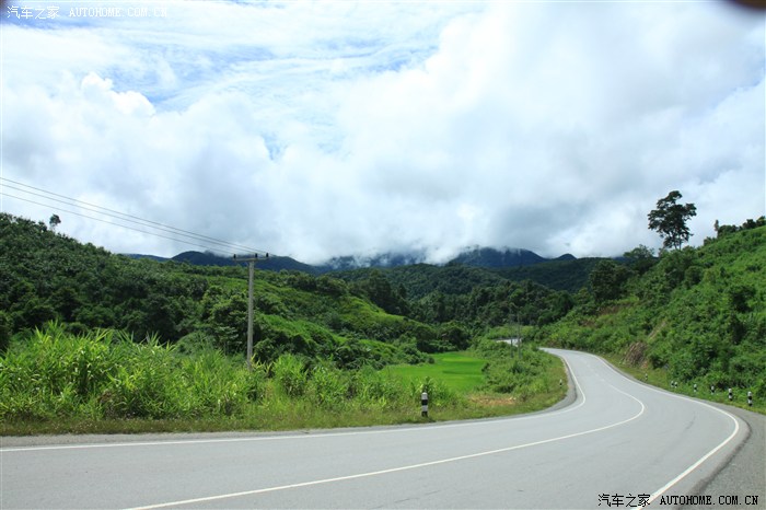 过了边境前行大概10公里遇到一个岔路,这里是老挝3号和13号公路的交叉点,打算从会晒口岸入境泰国的就得往右拐,经3号公路到达会晒了。 3号公路路况不错,风景超美。