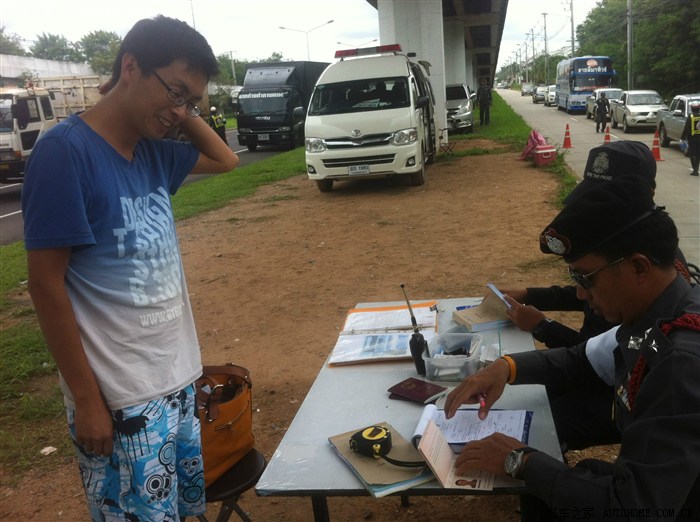 不好意思的挠挠头,希望别给中国人丢脸啊。 泰国警察现场办公,态度非常好。此生交罚款最开心的一次经历了。