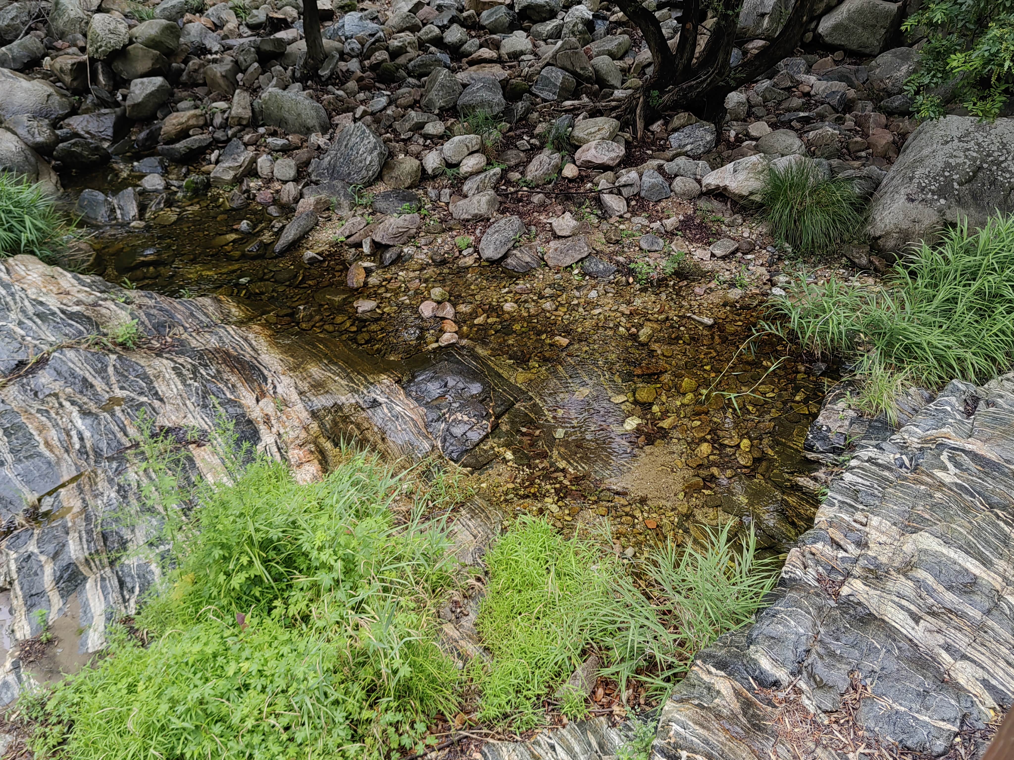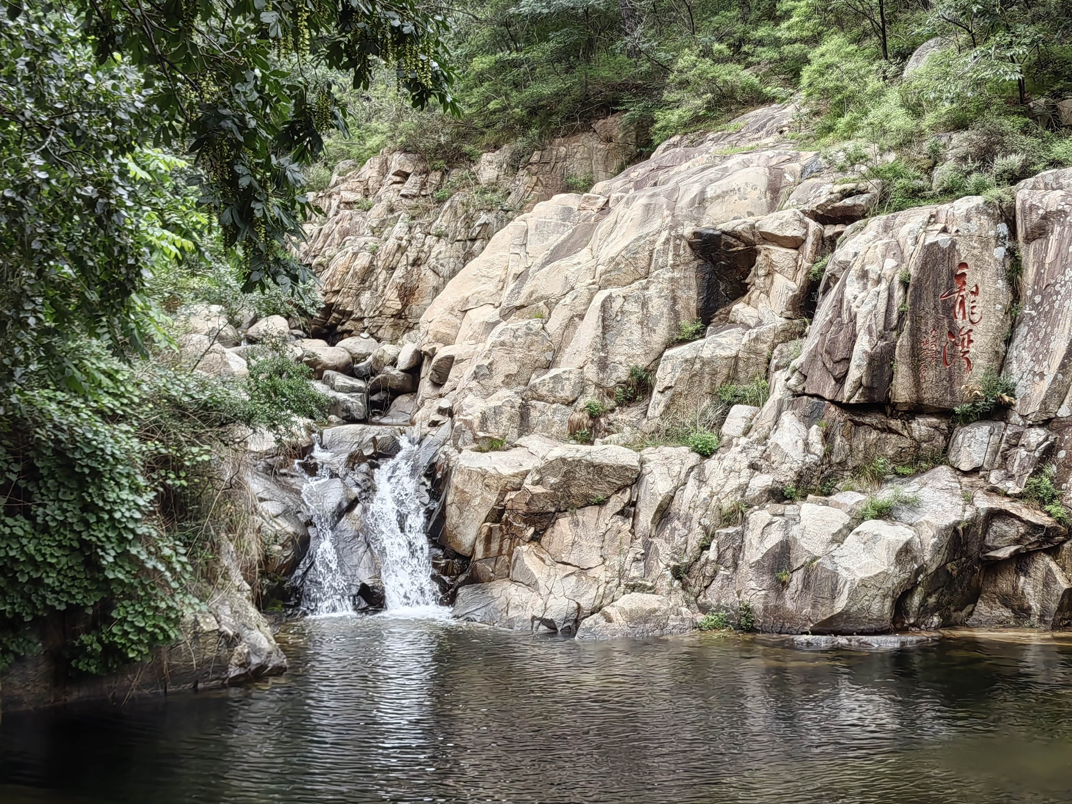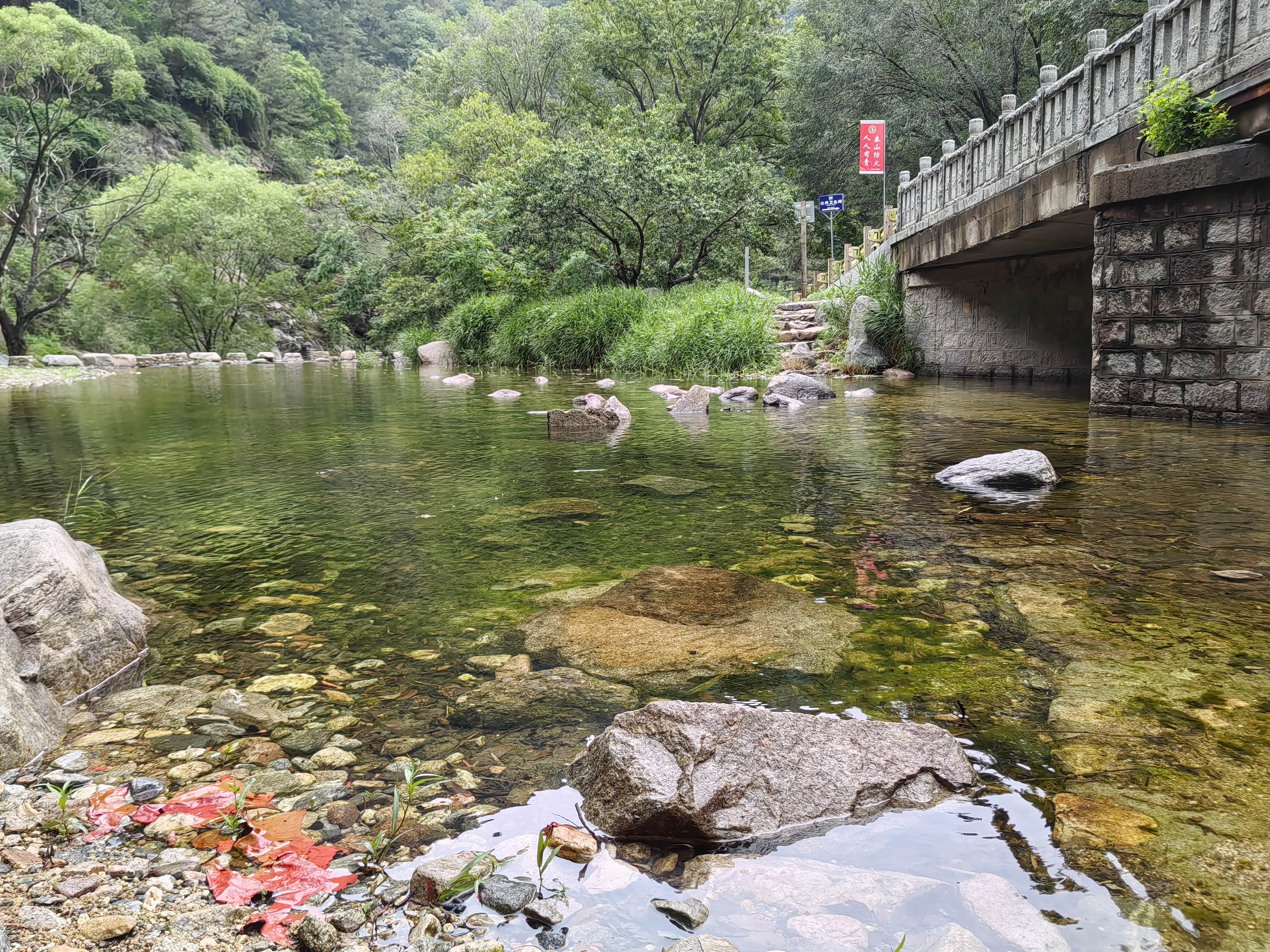 一处水潭,记不清地名了,仔细观察可以看见水里有泰山特有的赤鳞鱼。
