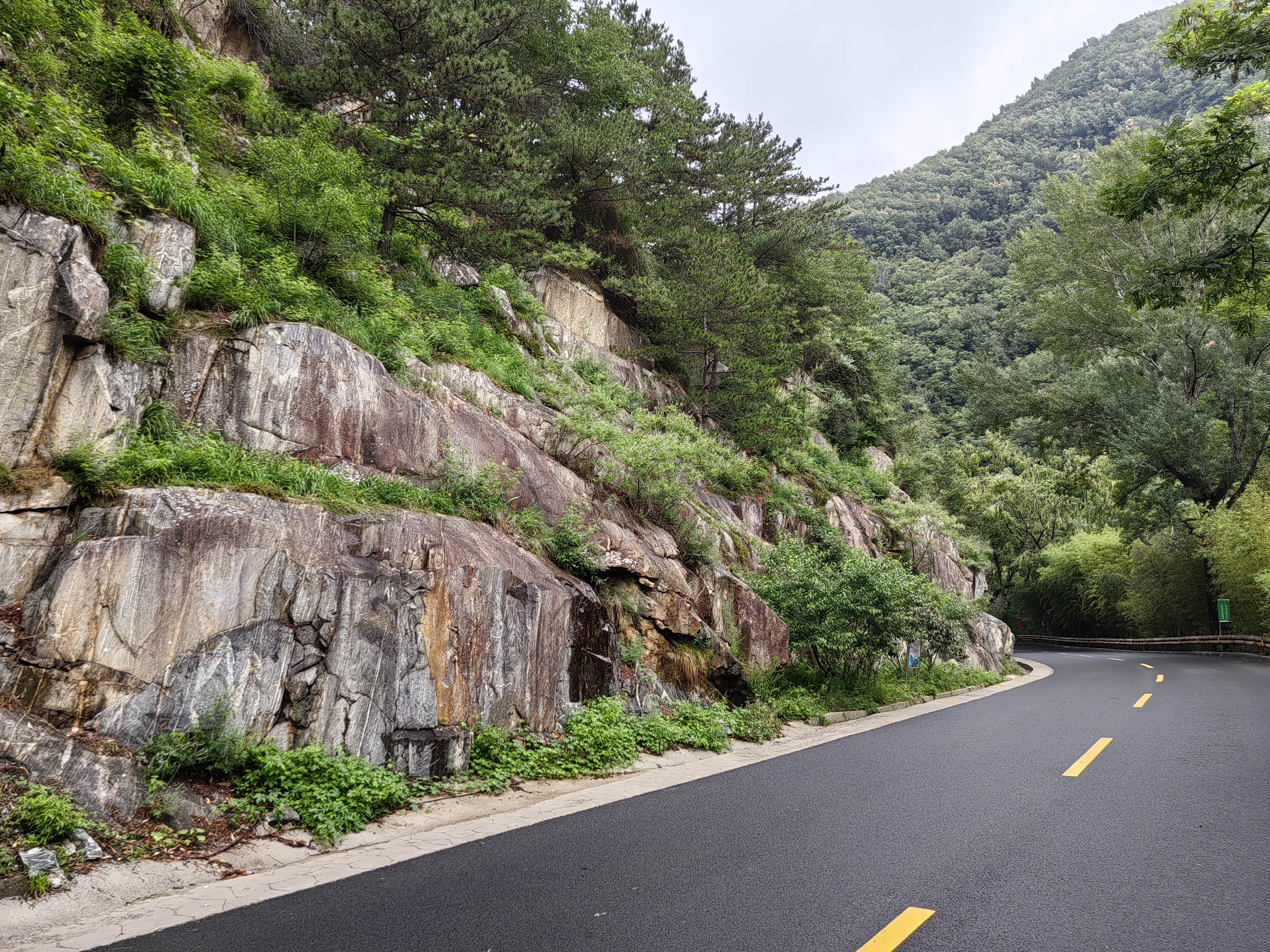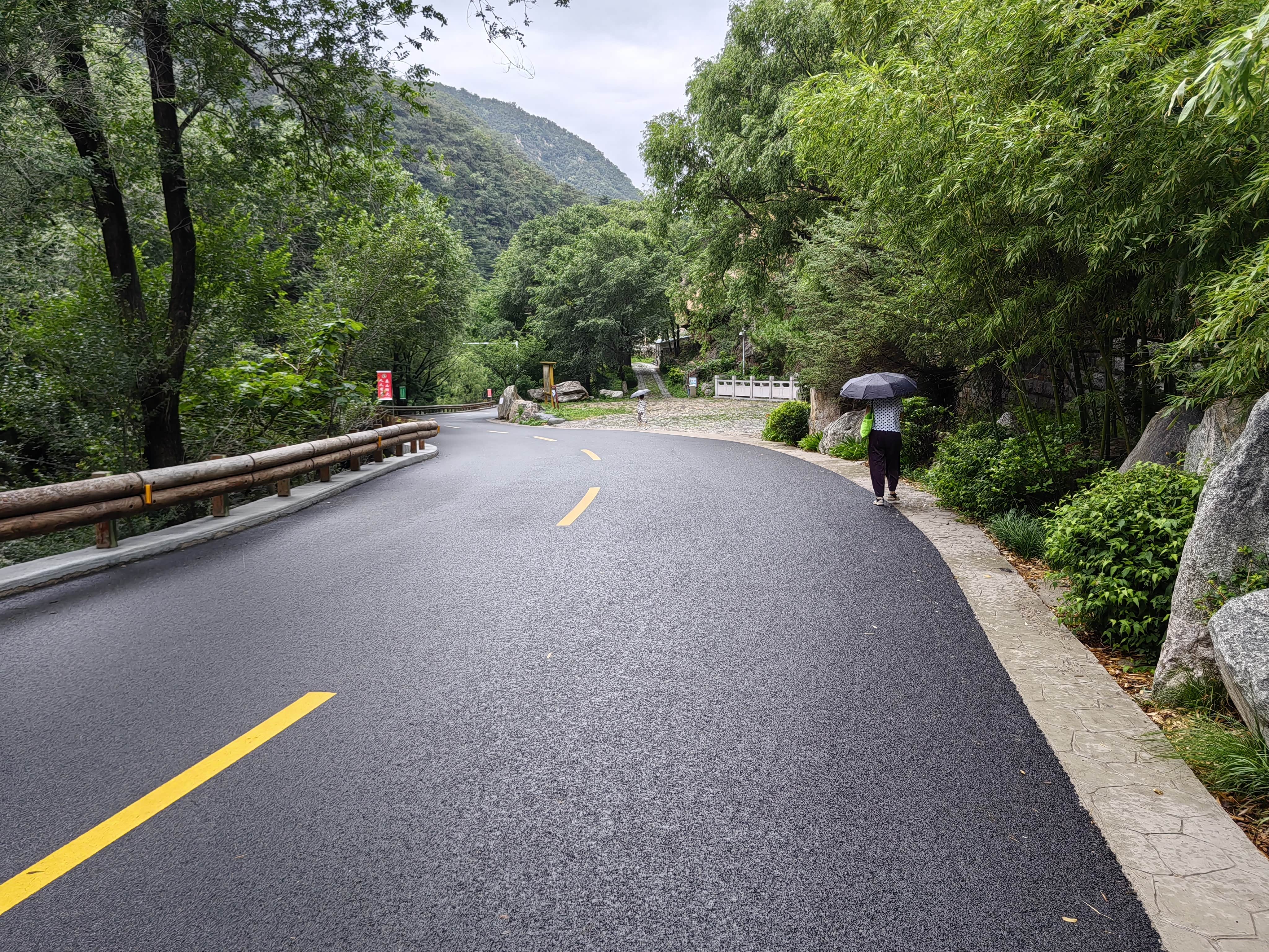 从黄石崖龙湾站下车后沿着主路下山。时不时有蒙星小雨落下,微风拂过,带来阵阵凉爽。