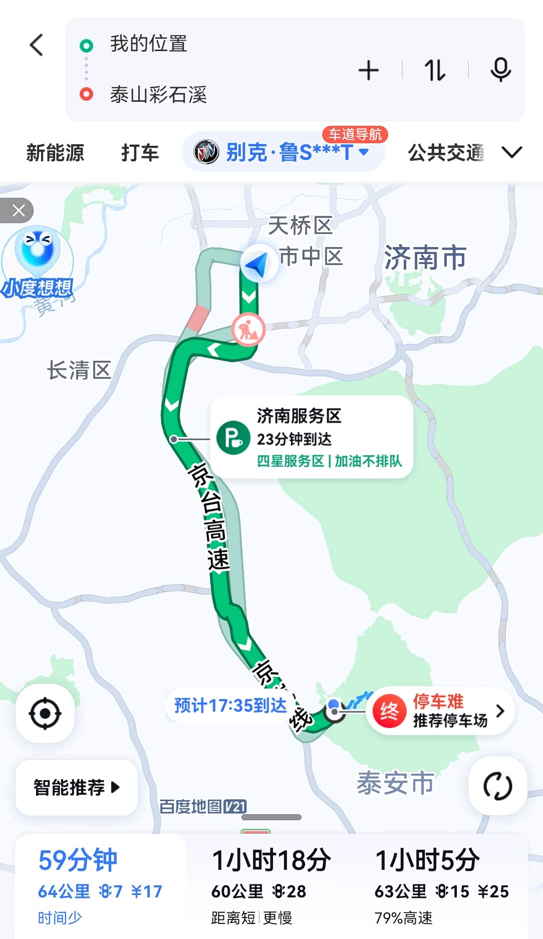主路线图,济南到泰安,全程64公里,1小时即可到达。这是非常适合一天来回的短途自驾游。