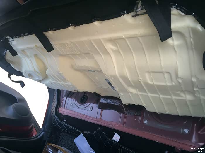 拆后排座椅,正副驾驶位后对应的后排位置都有个暗扣,网上看来的,使用了后备箱里的小撬杠。