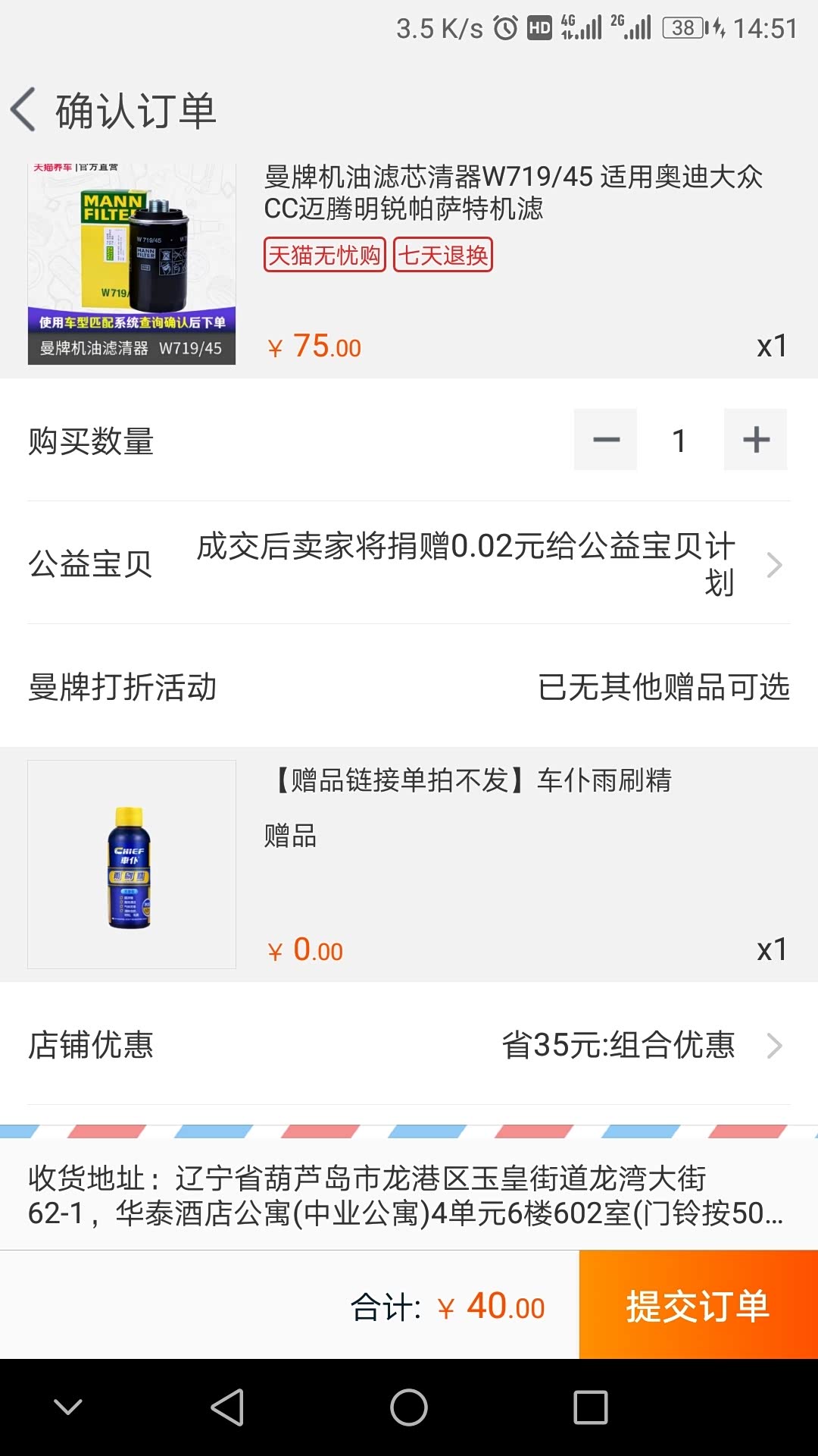 曼牌719/45二代EA888机滤, 40块贵不?