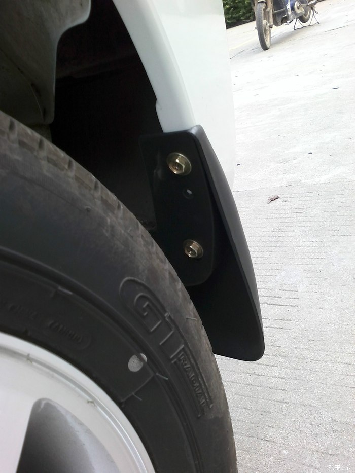挡泥皮是塑料的,质量还可以,就是螺丝孔不对,钻个孔,用螺丝装好就OK了。买的时候带了自攻螺丝,感觉不结实。