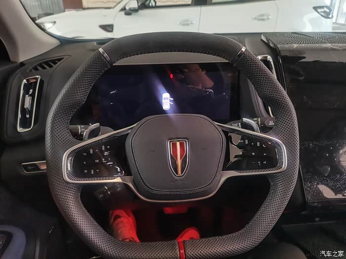 这款售价14.58w起价的红旗紧凑型suv内饰着实惊艳到了我!我承认作为女车主不懂什么性能动力,我只要颜值,好操作就可以满足我拉!打开车门那个大屏立马吸引了我,大屏在新款h5上也运用到了!不禁想到是不是年轻人都喜欢这种形式的屏幕大气,好操作!然后是扶手箱中间那一抹红,是我hs5没有的。记忆里只有h9扶手箱是宽宽的中间一抹红!我很是喜欢! 方向盘依旧是我喜欢的D型带红旗标很有仪式感。