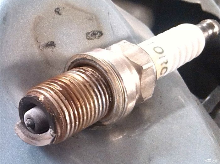 图3和图4,这个是火花塞,测缸压时拆下来的状况,修理工说是汽油油品不好,可我怎么也想不通,我用的都是中石化或中石油自营油站的油,不太可能油品有问题,要说热值不对,也不能啊,K7RTIP的火花塞