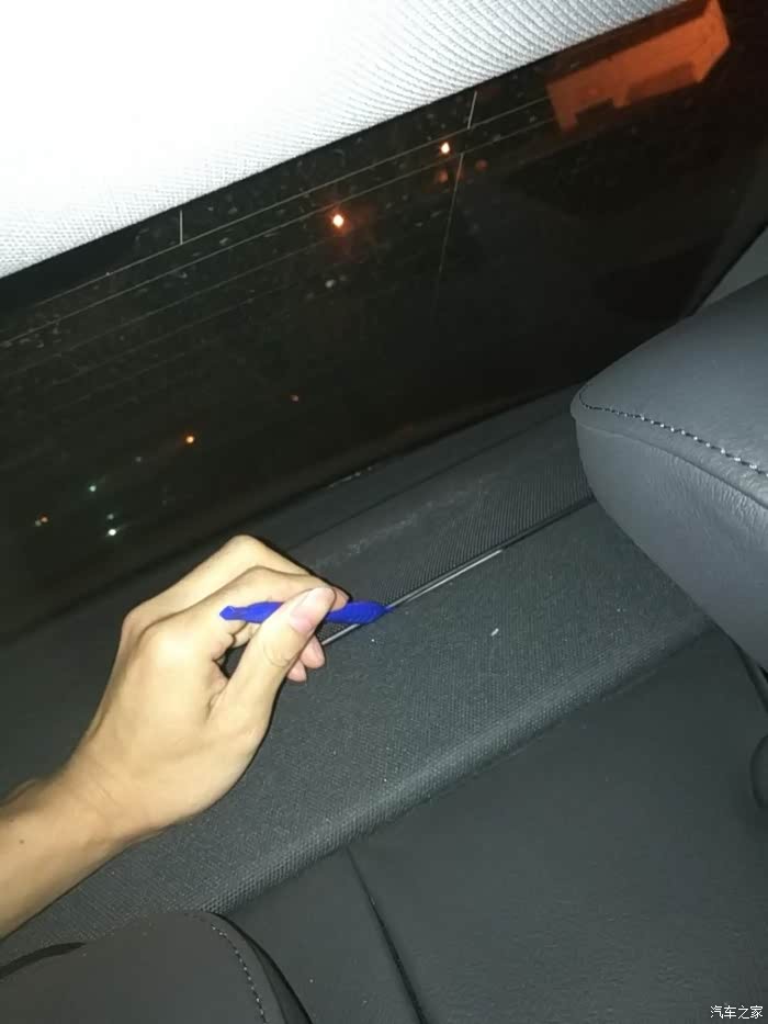 3.如下图方法拆开后排低音炮盖板,记得撬的时候用一点点力气
