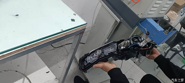 提车开了一个多月,虽说原厂大灯也是LED的,但是没有透镜,而且是反光杯式的,灰蒙蒙的天尤其下雨亮度实在难以忍受,今天直接开到改装店搞定,废话不说,上图。